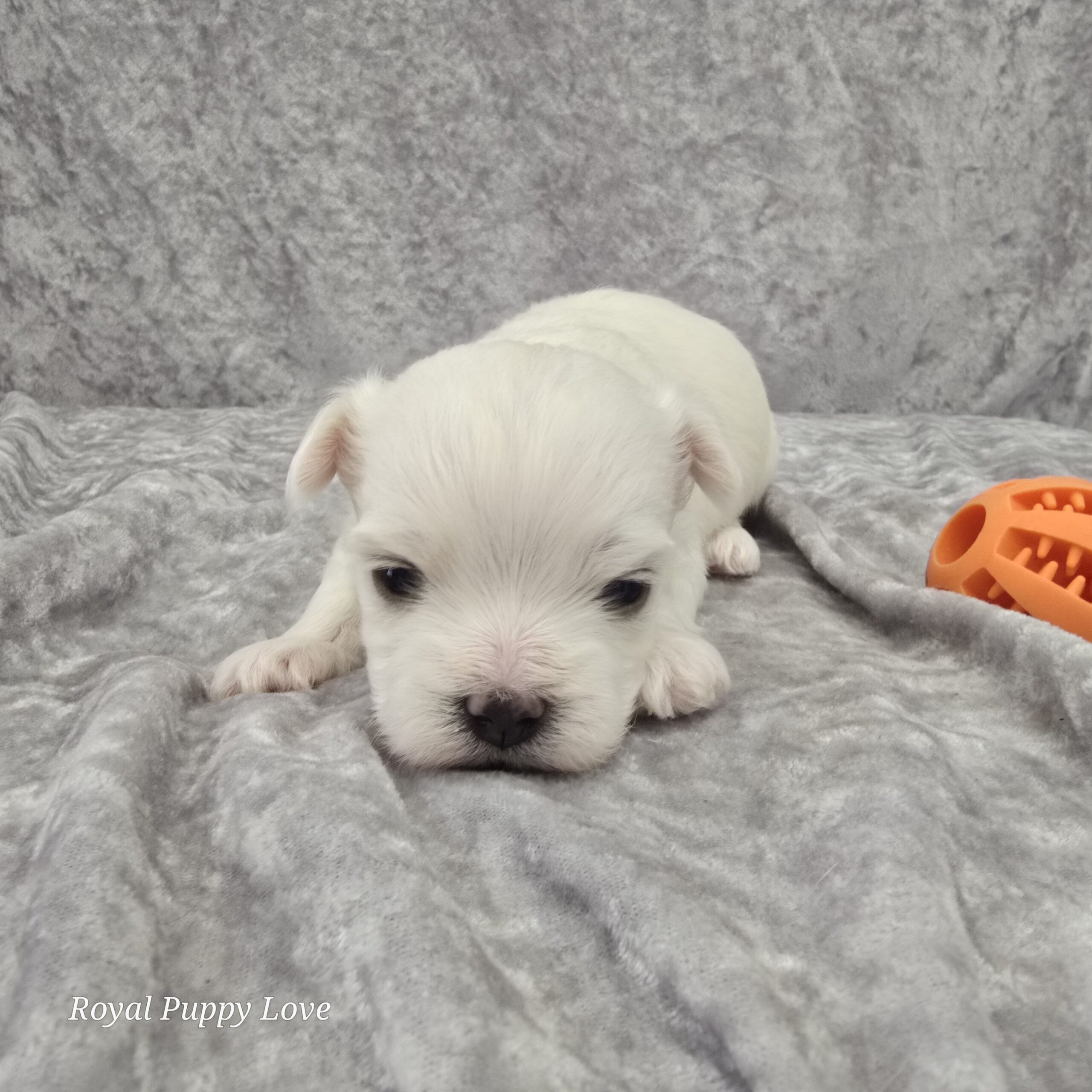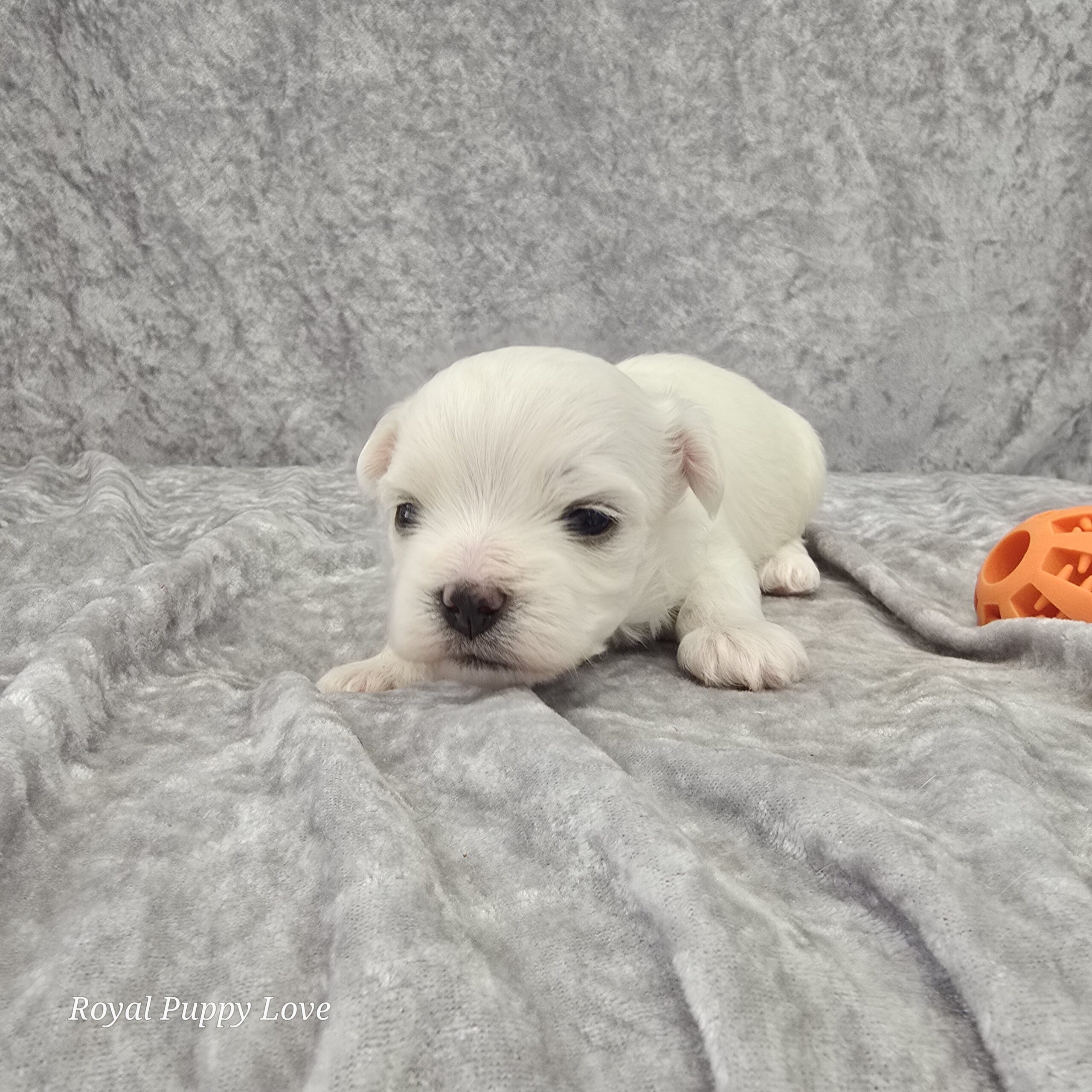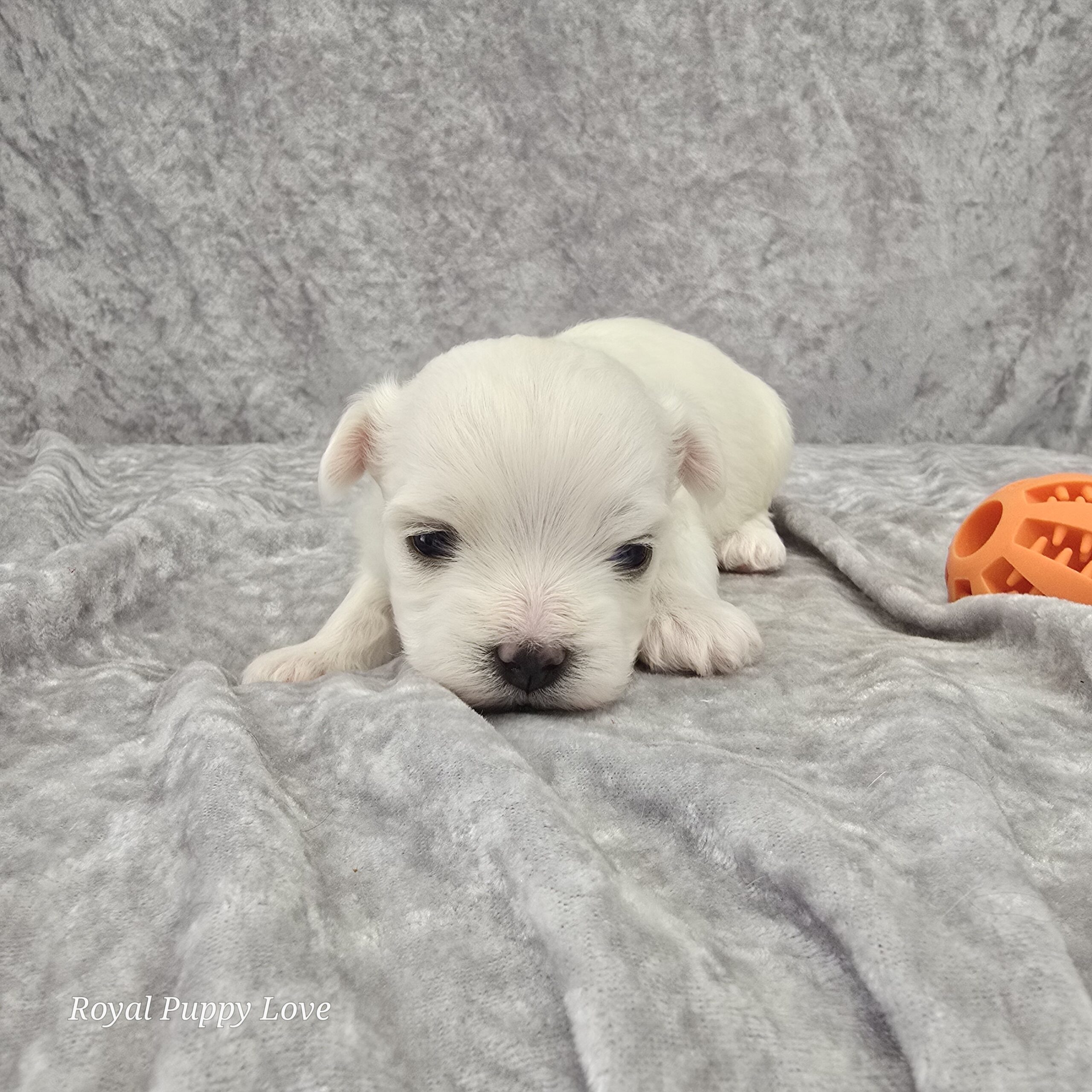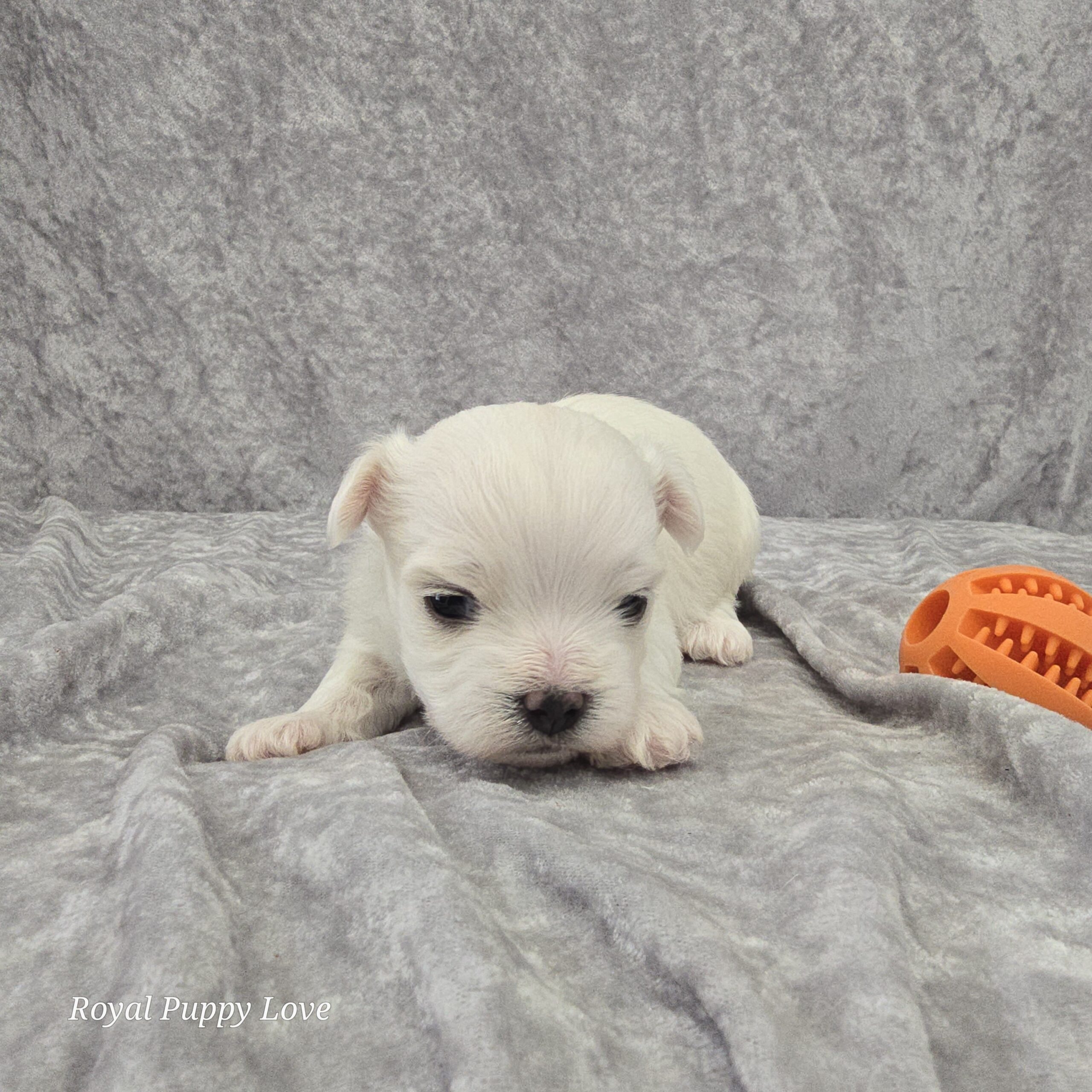 This little prince is serving looks, charm, and just a tiny bit of mischief. With his cloud-soft white coat, sweet expression, and that adorable Korean teddy bear face, he is already turning heads. This baby boy is half Korean, and has that distinctive round-eyed, teddy bear face with an extra precious look that makes people instantly fall in love.