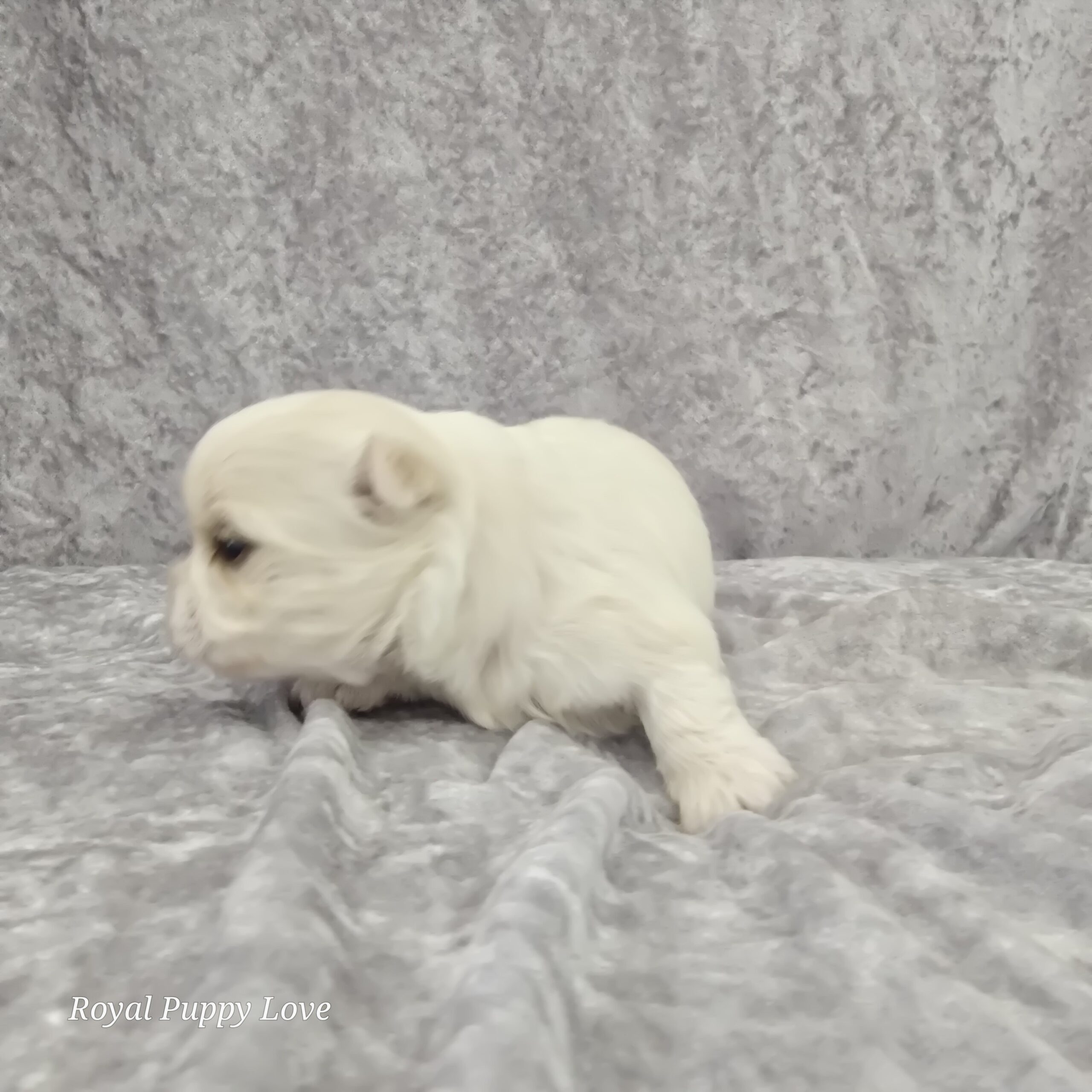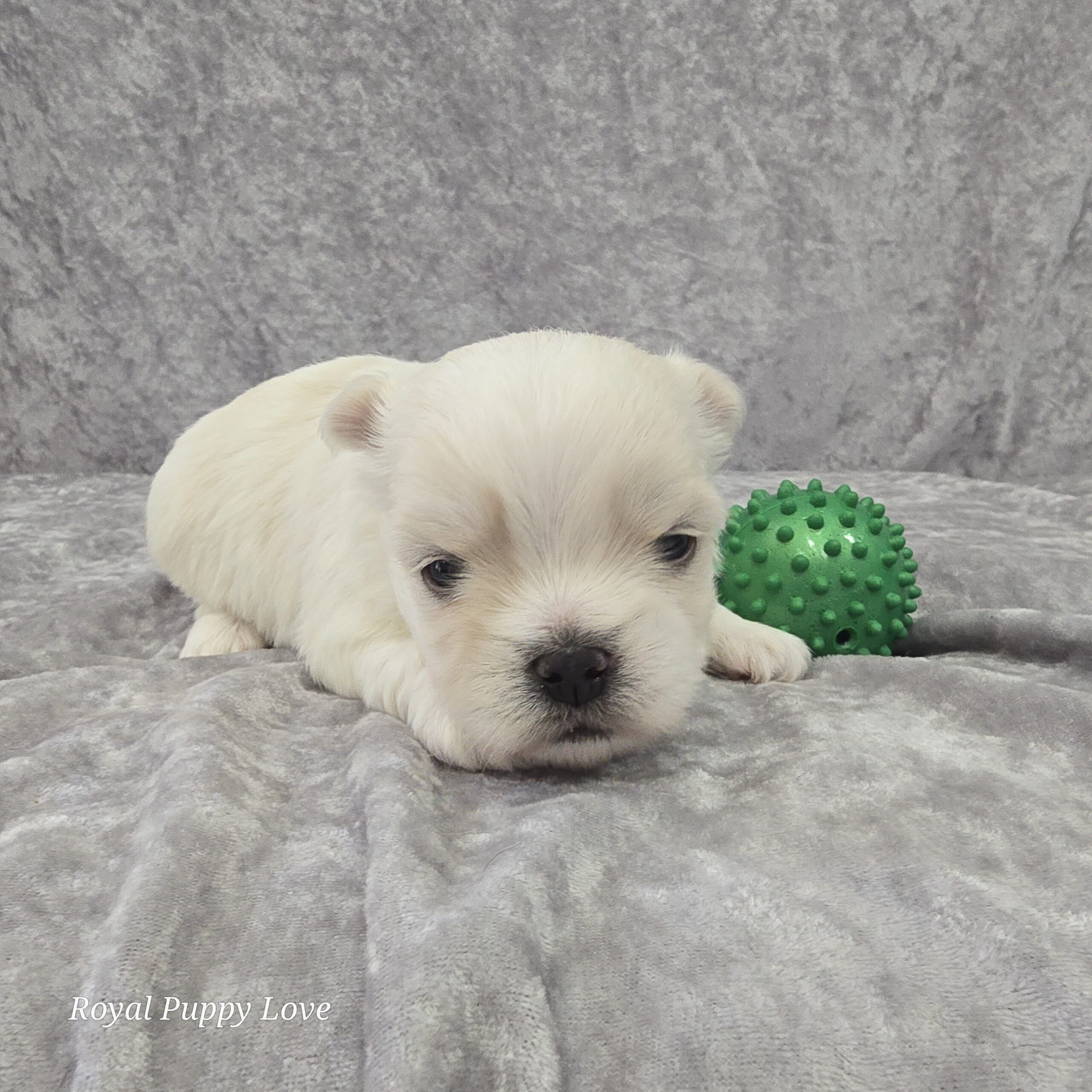 Meet a little gentleman with a truly regal presence. This beautiful Maltese boy has the soft white coat, sweet expression, and distinctive Korean teddy bear face that make these puppies so special. As a half Korean Maltese, he has that ultra-adorable, high-end look that feels almost too precious to be real.