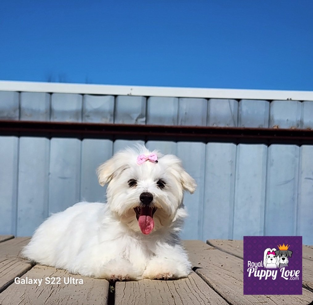 Such a tiny girl! Pretty sure this one is going to be a dainty little Maltese puppy like her mom. She is prissy and likes her bows and just look at those EYES!! She has that face that is going to let her get away with anything she darn well wants to do!! She has silky soft fur and is quite the little snuggle bunny right now. If she is anything like her parents, she will be a laid back, lazy little couch warmer who wants nothing more than a warm spot in the bed next to you. She comes from a very long line of lazy, spoiled, loving fur babies. Her dad is a direct from Korea import and it shows in her face because she has that distinct “teddy bear” face that Korean Maltese are known for having.