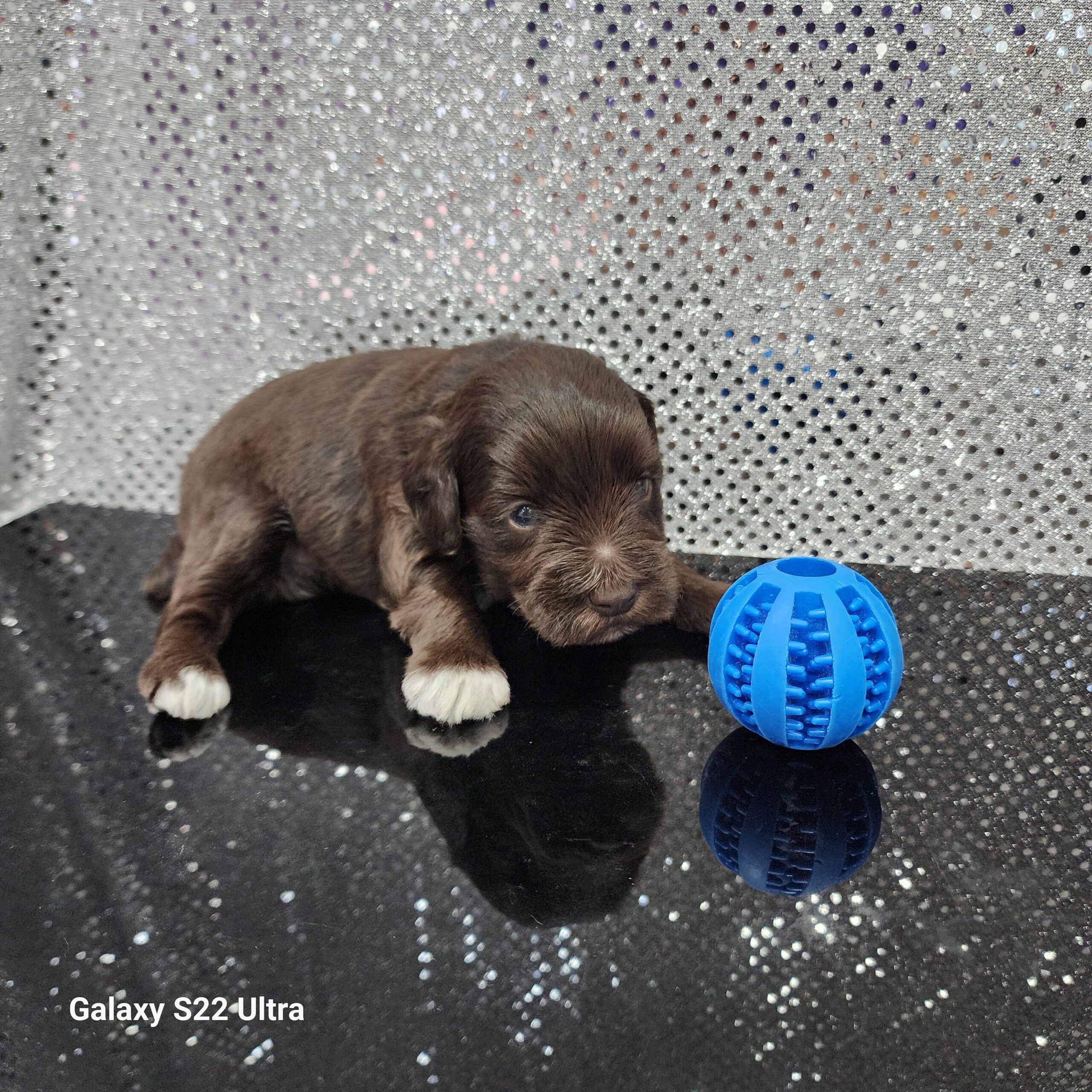 From the moment this handsome little gentleman entered the world, we knew he was something truly special. His coat is soft as silk and kissed with a luster that makes him shimmer like a little royal truffle.