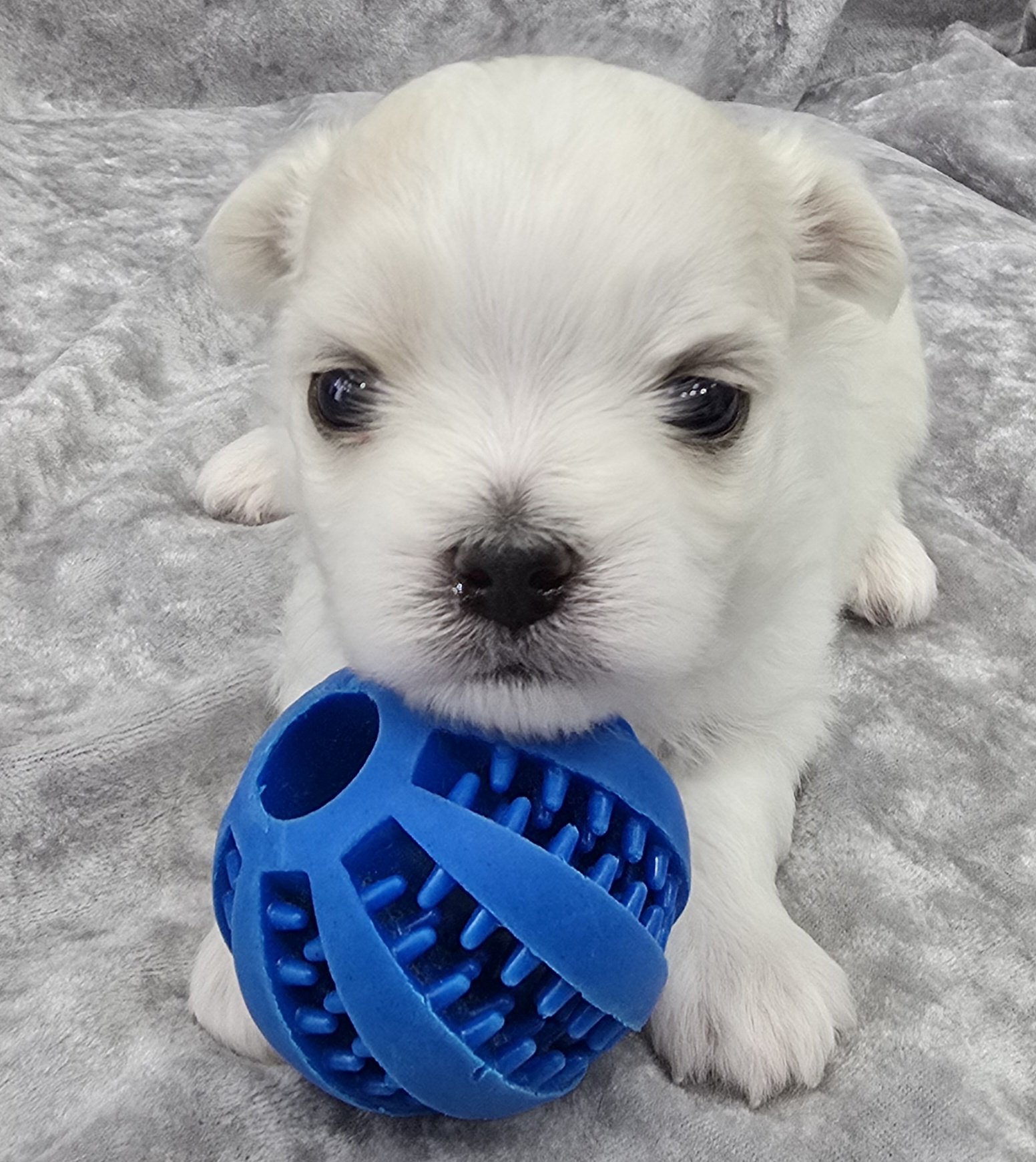 This handsome little prince is the kind of puppy people wait for. With his soft white coat, beautifully refined features, and that highly sought-after Korean teddy bear face, he has an effortlessly luxurious look that is impossible to overlook. As a half Korean Maltese, he carries that distinctive doll-like expression so many people fall in love with — soft, round, and absolutely exquisite.